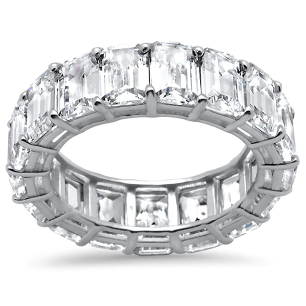 6.34ct E-F VVS GIA CERTIFIED Emerald Cut Diamonds Eternity Band Ring Size 6.5