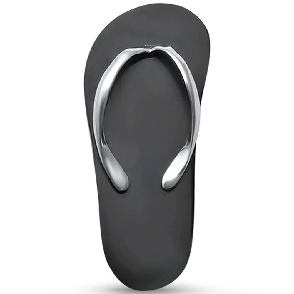 • Black Onyx Beach Desgin Sandal Flip Flop .925 Sterling Silver Charm Pendant