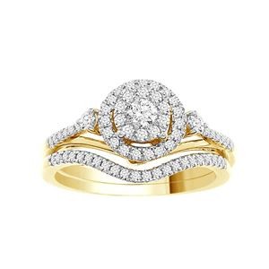 LADIES BRIDAL RING SET 1/2 CT ROUND DIAMOND 14K YELLOW GOLD