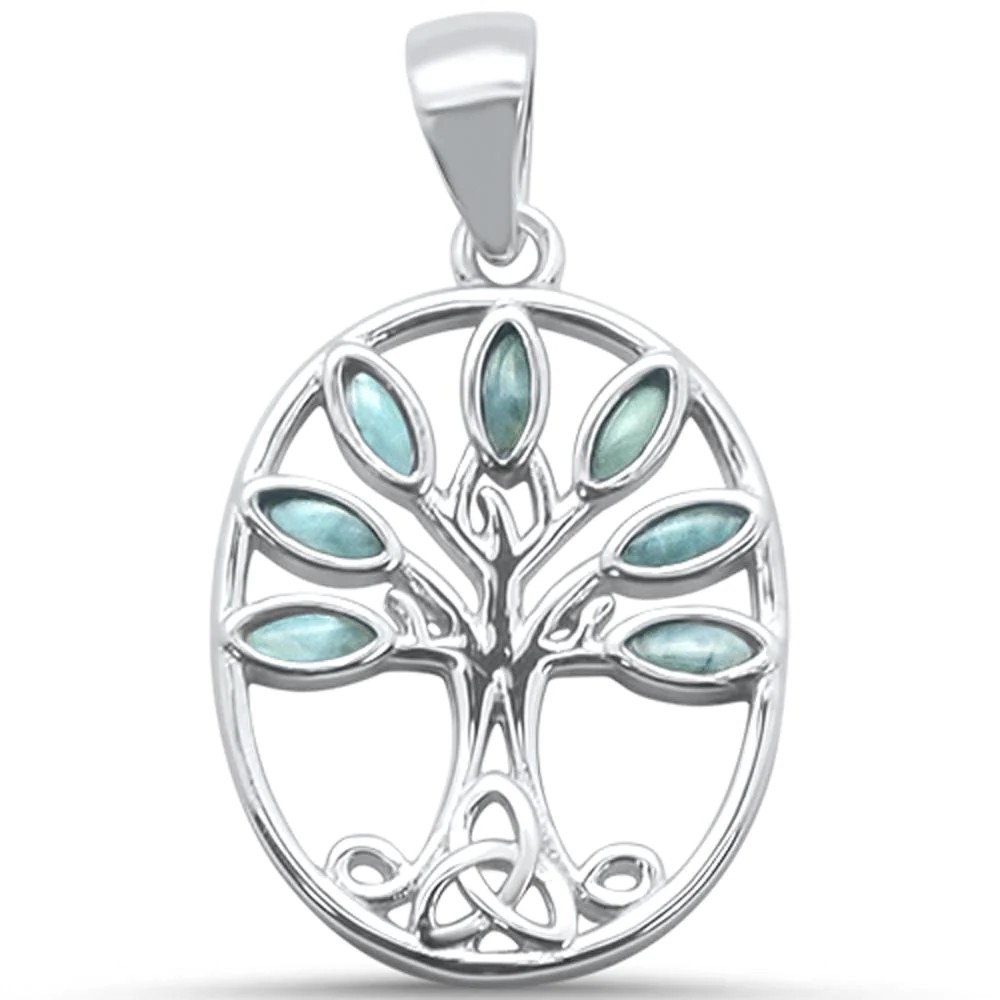 Larimar Tree Of Life Family Tree .925 Sterling Silver Charm Pendant