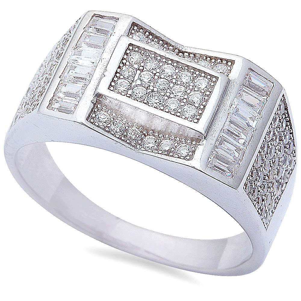 Men's 2ct Baguette & Pave Cz Hiphop Fashion .925 Sterling Silver Ring Size 8