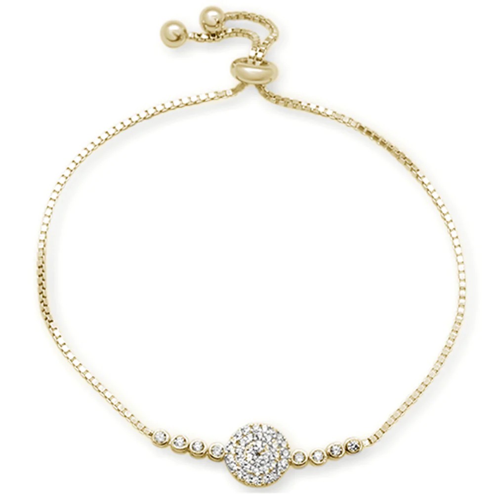 Micro Pave Yellow Gold Plated Round Cubic Zirconia .925 Sterling Silver 7-9" Adjustable Toggle Bola Bracelet