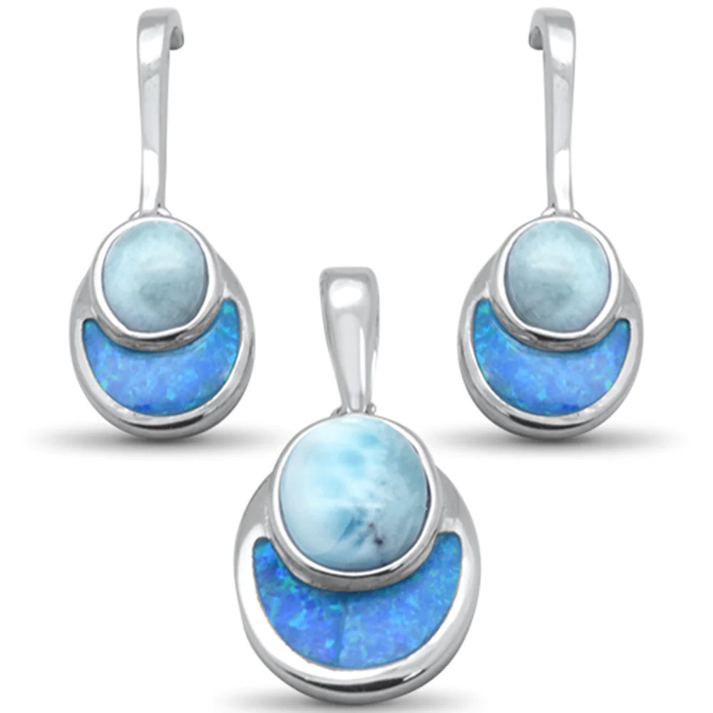 • Natural Larimar & Blue Opal .925 Sterling Silver Earring & Pendant Set