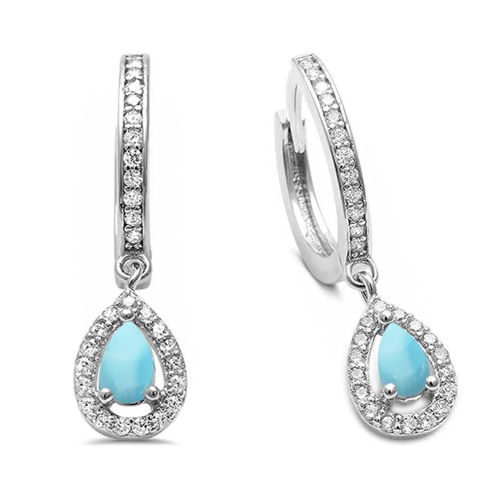 • Natural Larimar & Cubic Zirconia Hoop Dangle .925 Sterling Silver Earrings