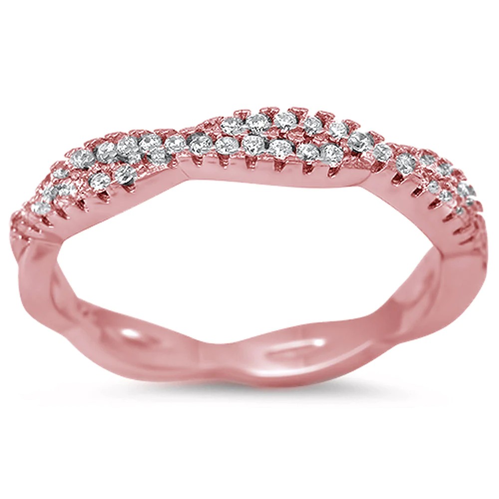 Rose Gold Plated Infinity Style Cubic Zirconia .925 Sterling Silver Ring Sizes 4-11