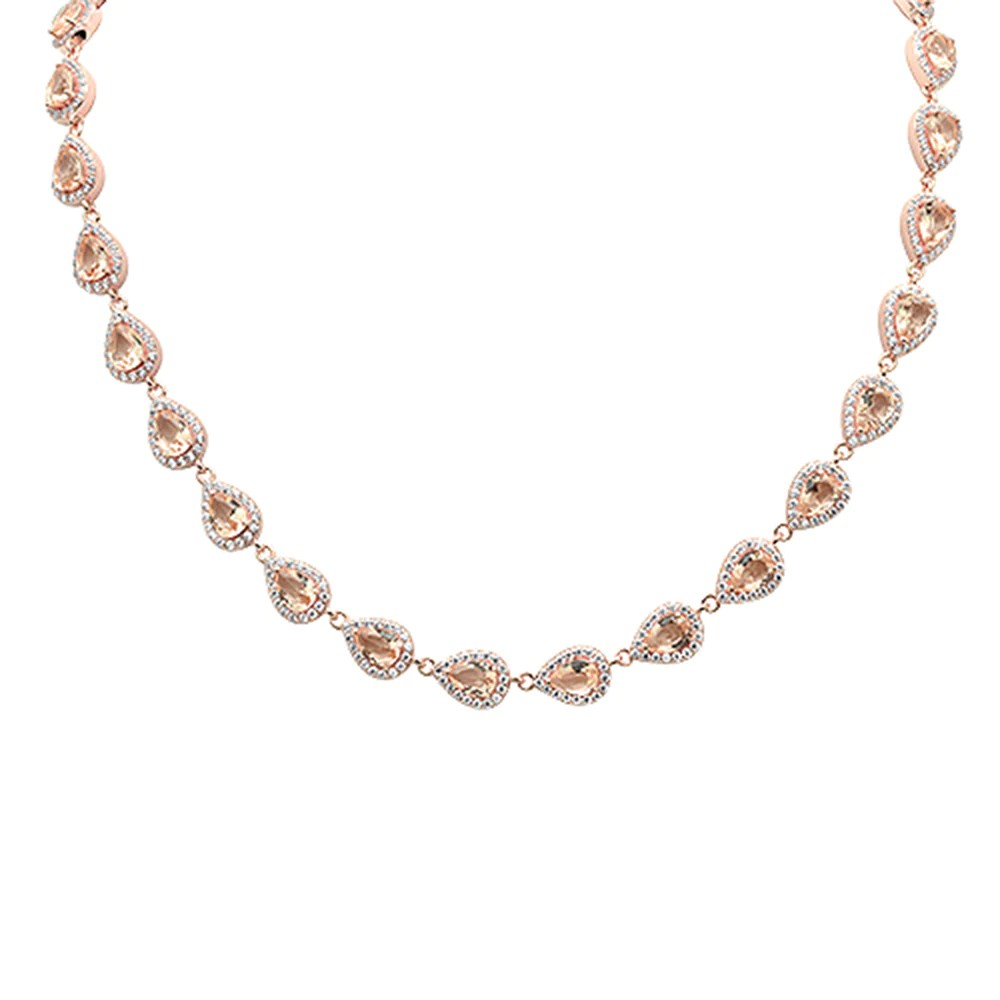 • Rose Gold Plated Morganite & Cubic Zirconia .925 Sterling Silver Necklace