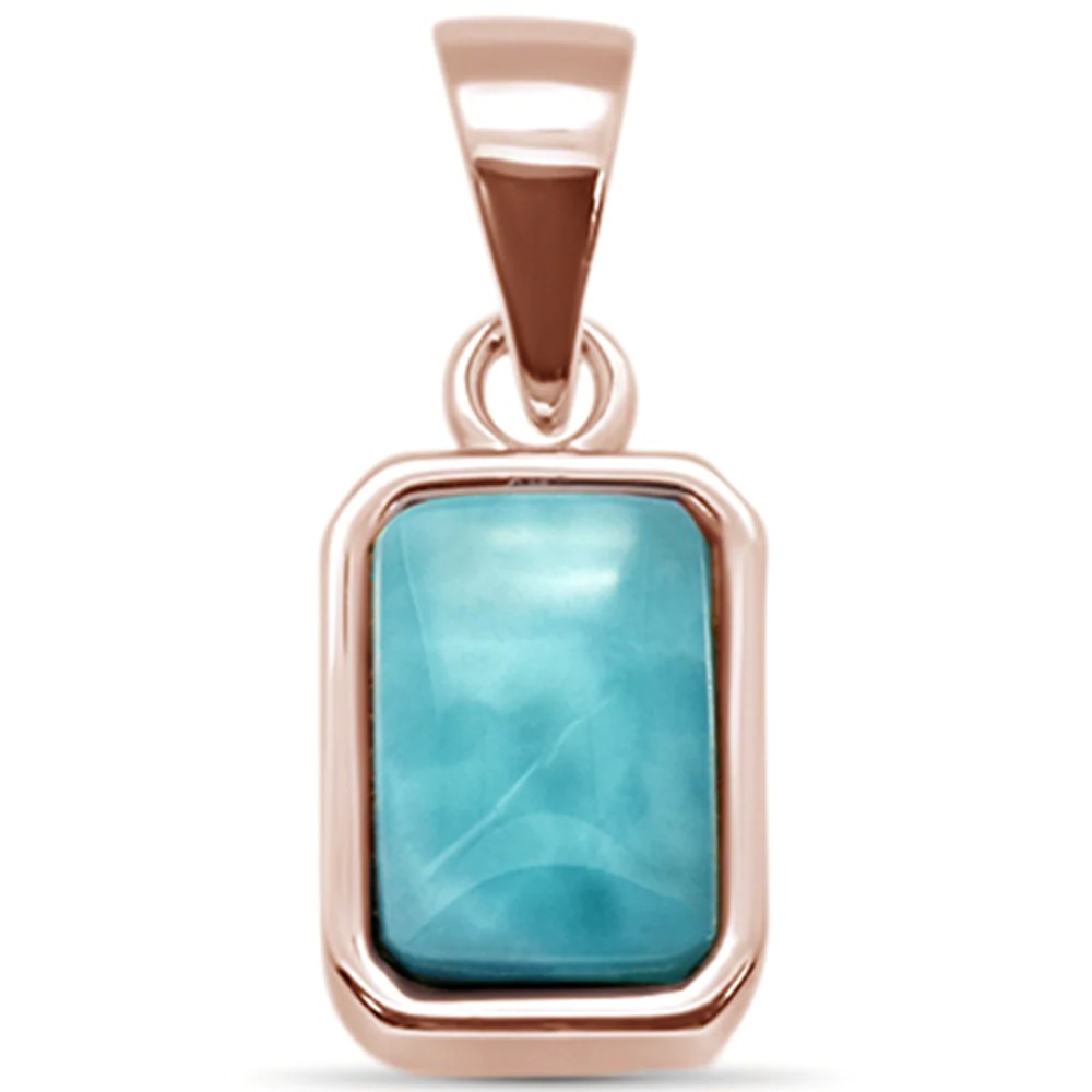 • Rose Gold Plated Elegant Modern Natural Larimar .925 Sterling Silver Pendant