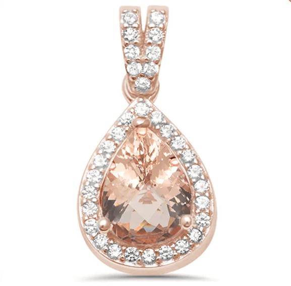 • Rose Gold Plated Pear Morganite & Cubic Zirconia .925 Sterling Silver Pendant