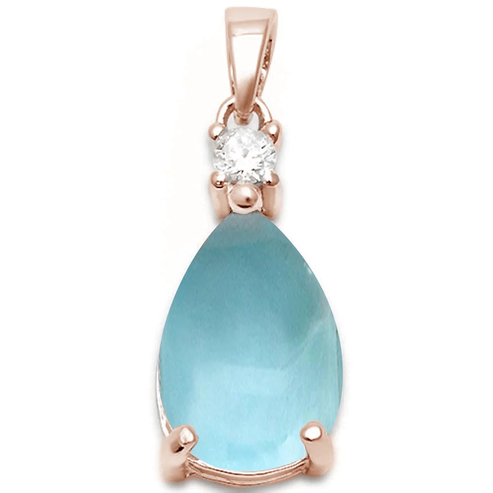 • Rose Gold Plated Pear Shape Natural Larimar & Cubic Zirconia .925 Sterling Silver Pendant