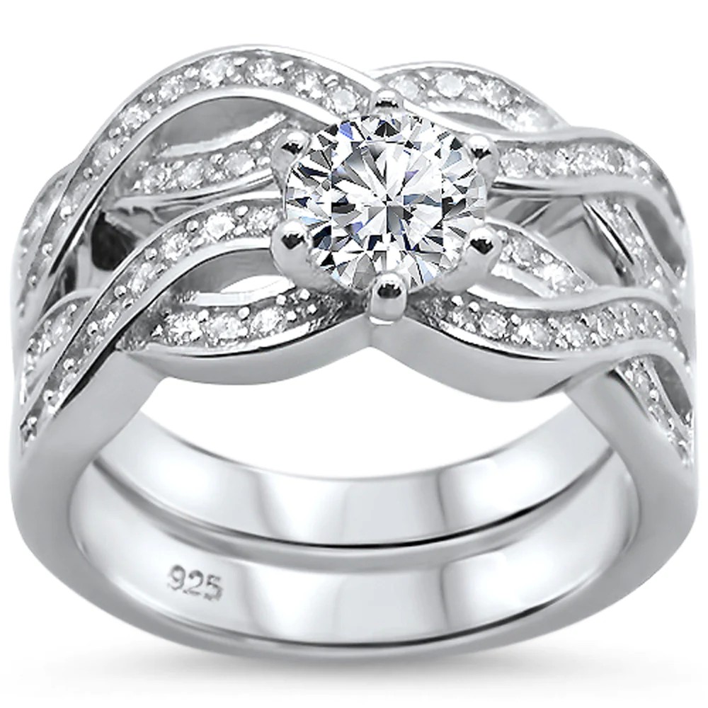 Round Infinity Twisted Band Engagement .925 Sterling Silver Ring Set Sizes 6-8