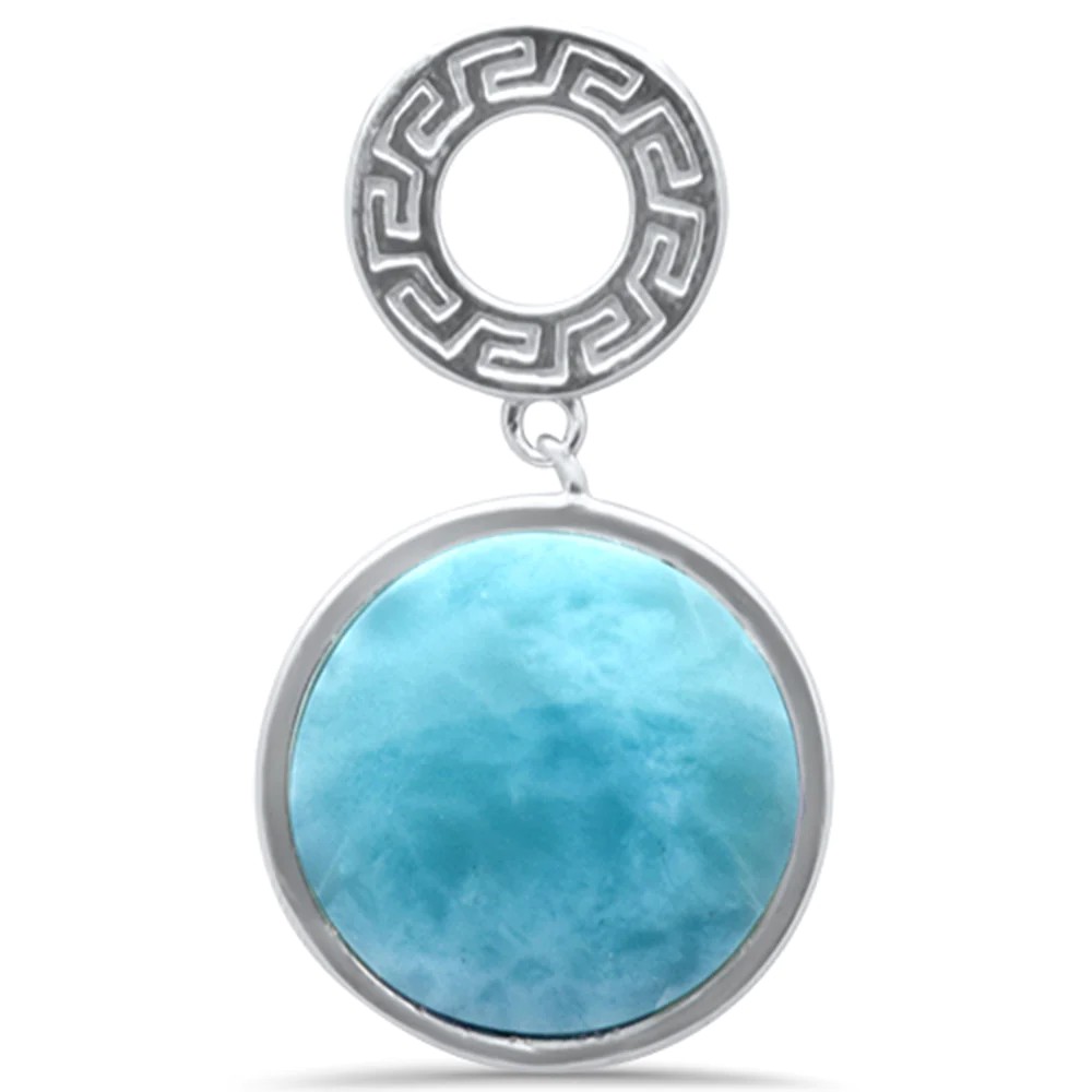 • Round Natural Larimar Greek Design .925 Sterling Silver Pendant
