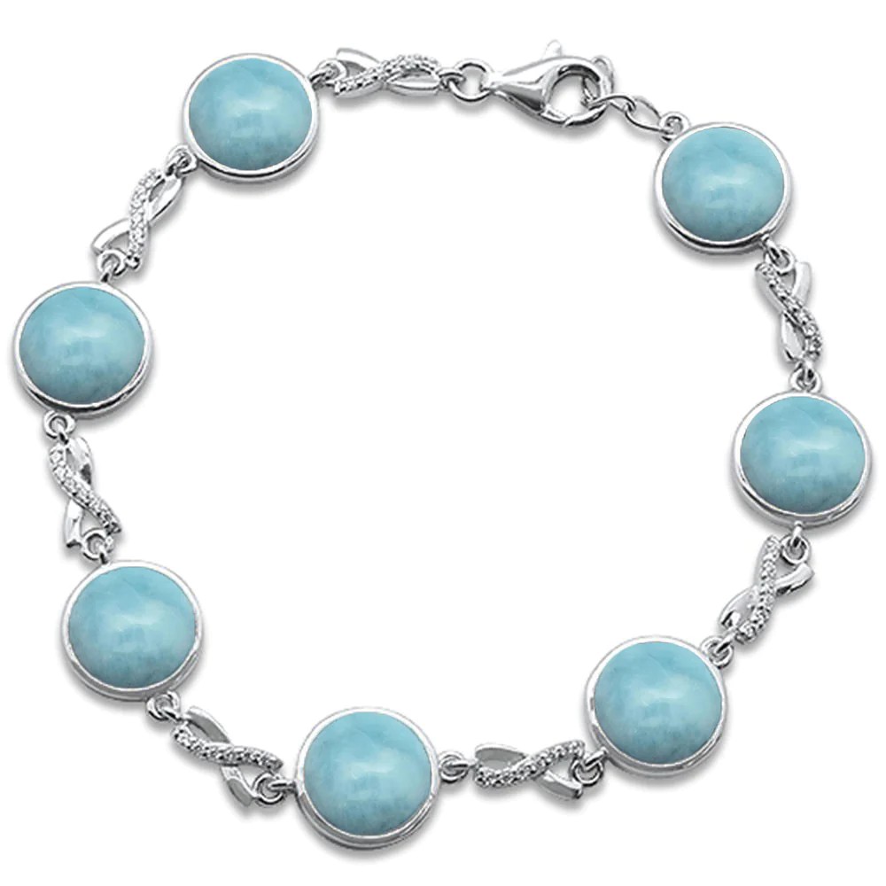 Round Natural Larimar Infinity Cubic Zirconia Design .925 Sterling Silver Bracelet 7" Long