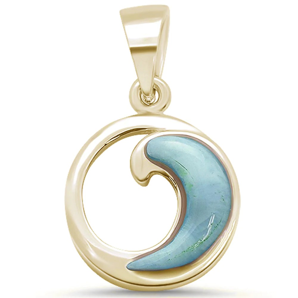 • Yellow Gold Plated Natural Larimar Wave Deisgn .925 Sterling Silver Pendant