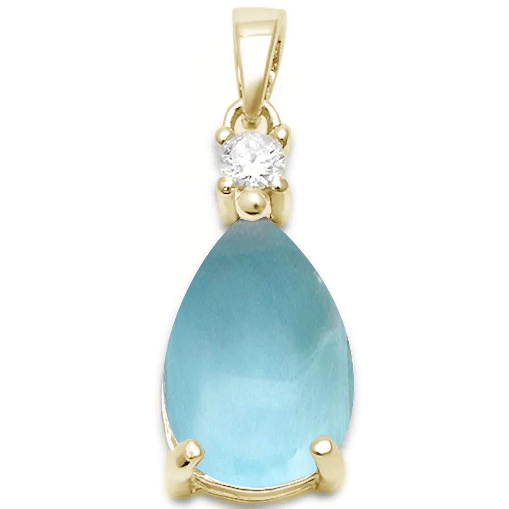 Yellow Gold Plated Pear Shape Natural Larimar & Cubic Zirconia .925 Sterling Silver Pendant